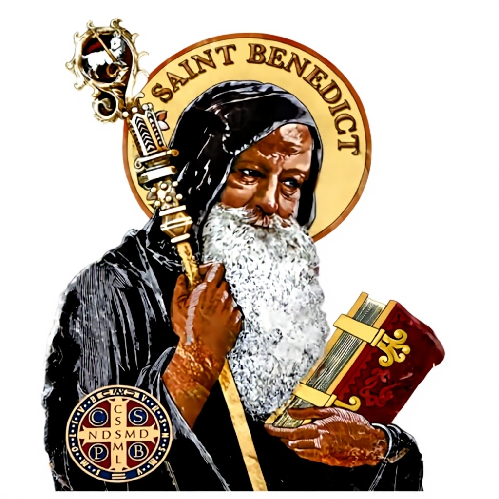 - Design retrò dettagliato con simboli della medaglia di San Benedetto
